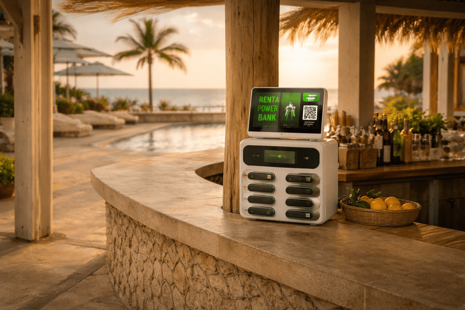 El cliente se lleva la batería y sigue disfrutando — bailar, conversar, tomar el sol…Carga su móvil sin interrumpir su experiencia.